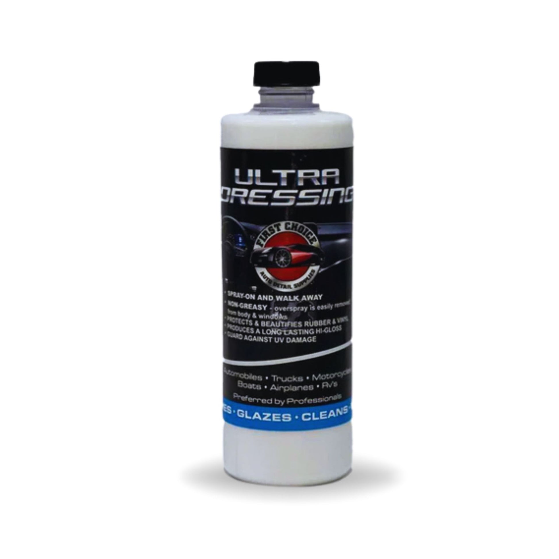Ultra Dressing delivers professional-grade tire conditioning with a rich, deep black gloss finish that restores faded sidewalls to showroom appearance.