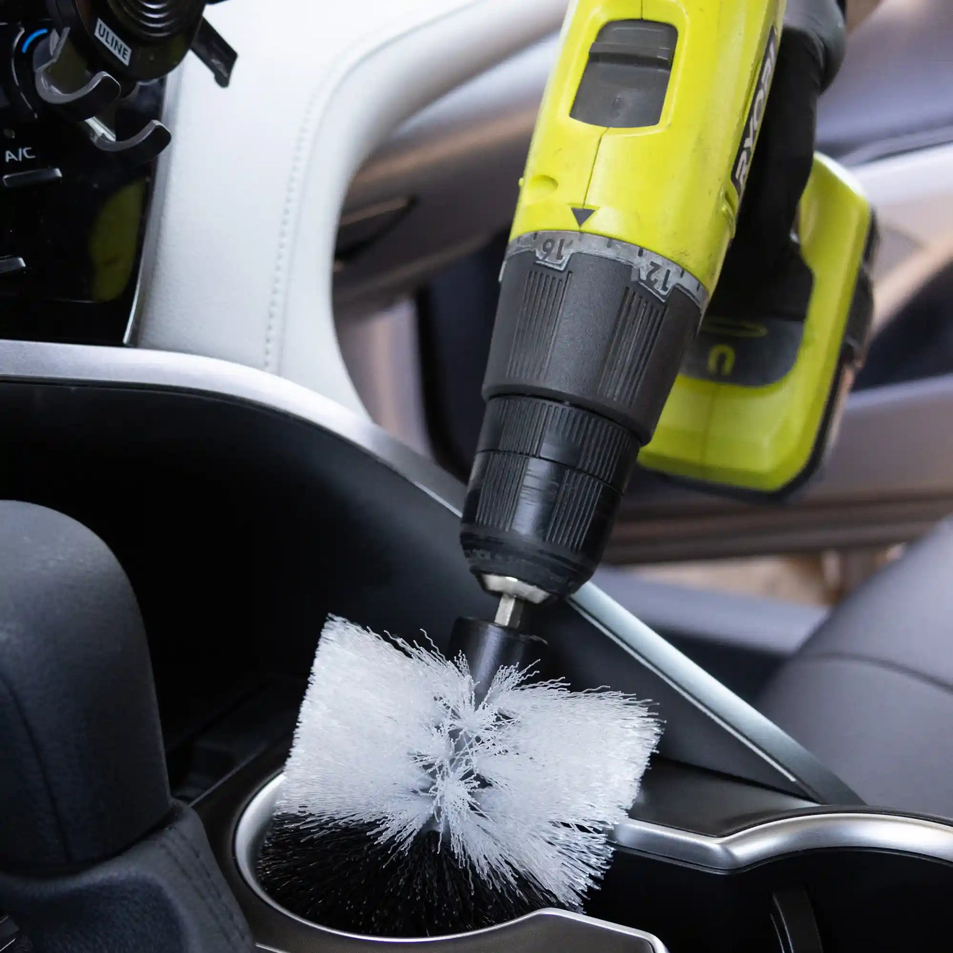 This three-piece brush collection attaches to any standard power drill, delivering aggressive cleaning action on carpet fibers, upholstery fabric, tire sidewalls, and intricate engine compartment details.